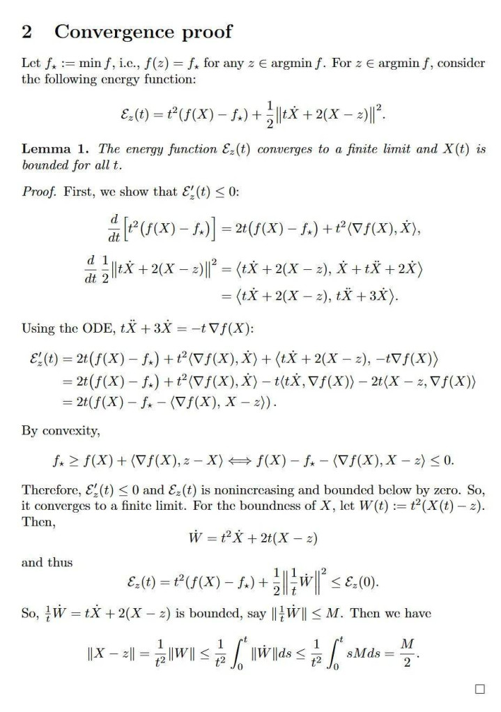 同样,AI 基于此给出的分析是:Nesterov ODE (常微分方程) 的解 X (t) 最终会收敛到函数 f 的某一个最小值点 X∞。